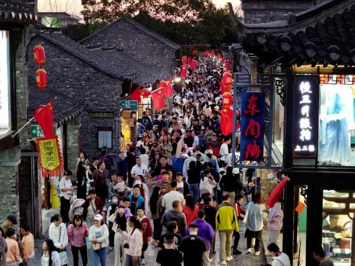 作為江蘇省首批數(shù)字人民幣文旅應用集聚區(qū),街區(qū)不斷創(chuàng)新“揚州老字號+數(shù)字文創(chuàng)”的文旅消費模式,謝馥春、三和四美等20余家老字號推出數(shù)字人民幣專屬折扣。此外,街區(qū)還打造“月下東關·春日雅集”“漢森熊·游園會”等非遺市集,日均吸引超1.95萬人次參與拓印團扇、生肖剪紙等互動體驗,推動傳統(tǒng)商戶數(shù)字化轉型率有效提升,形成“日賞非遺、夜享雅韻”的全時段消費閉環(huán)。